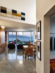 This stunning five-level home sits serenely on the hill above the bay. The house has a strong Scandinavian flavour and features windows designed to capture the view.